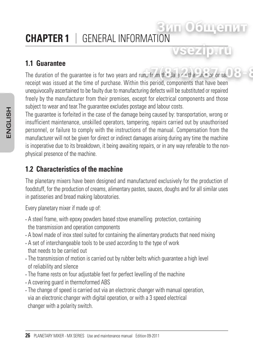 PLANETARY MIXER - MX SERIES Use and maintenance manual Edition 09-2011