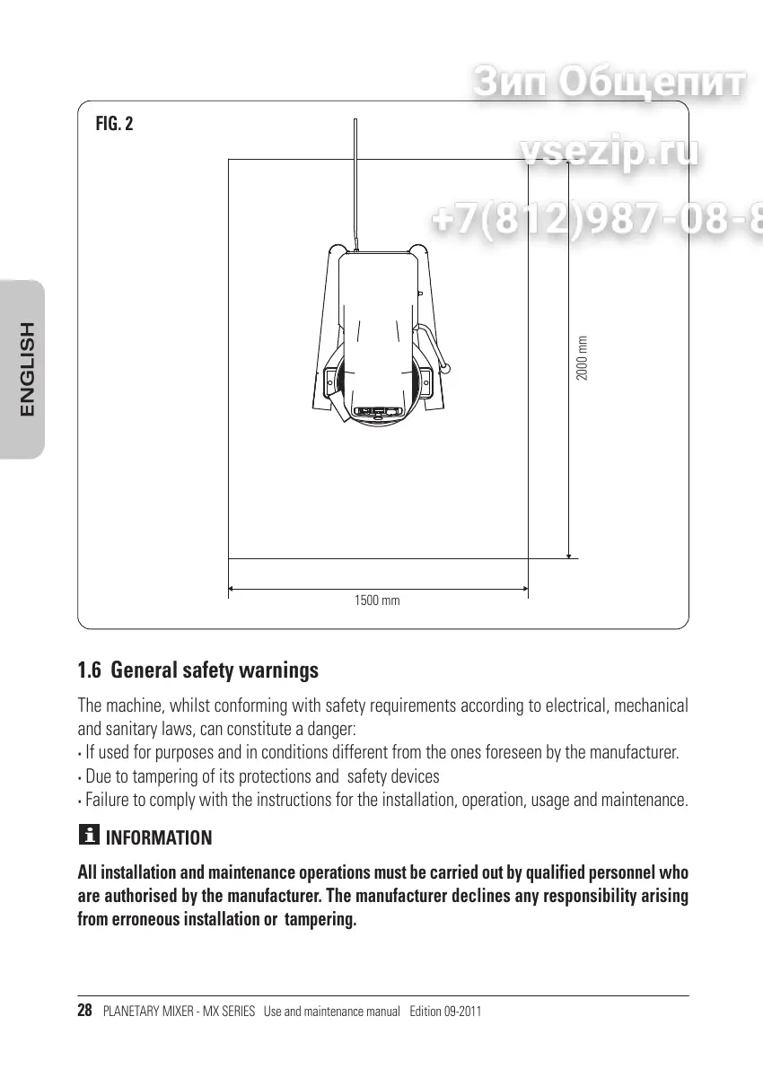 PLANETARY MIXER - MX SERIES Use and maintenance manual Edition 09-2011