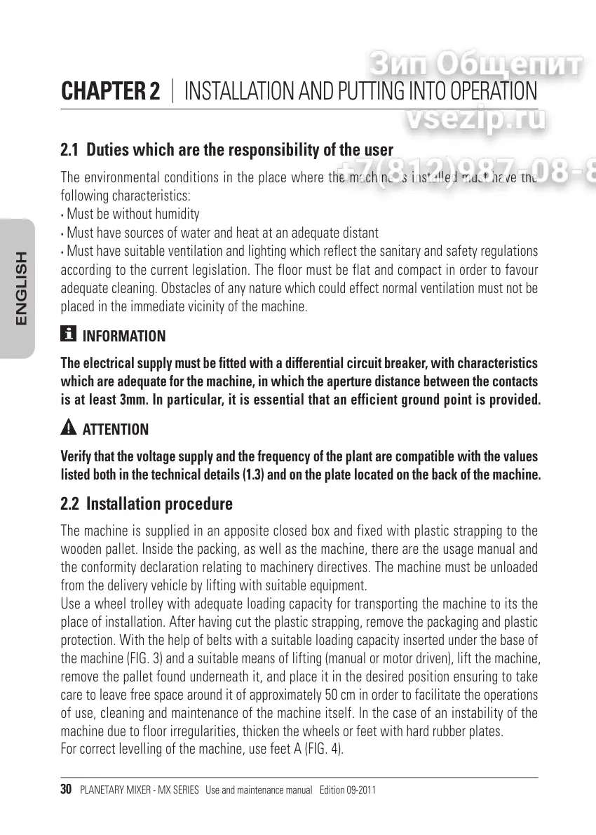 PLANETARY MIXER - MX SERIES Use and maintenance manual Edition 09-2011