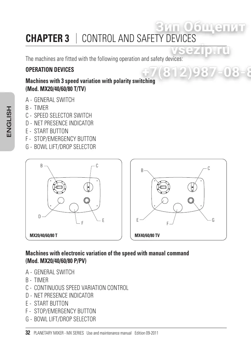 PLANETARY MIXER - MX SERIES Use and maintenance manual Edition 09-2011