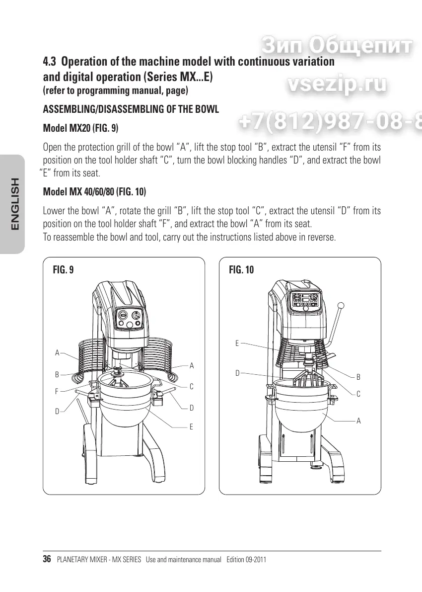 PLANETARY MIXER - MX SERIES Use and maintenance manual Edition 09-2011