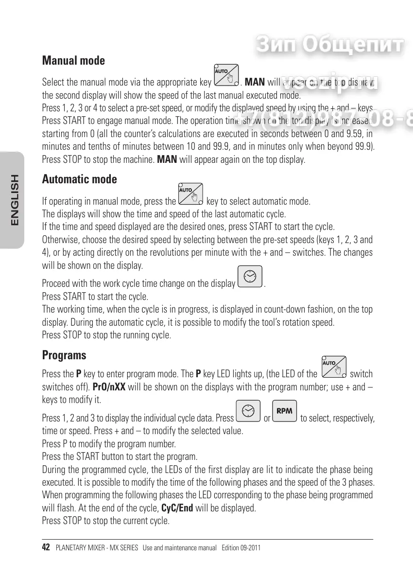 PLANETARY MIXER - MX SERIES Use and maintenance manual Edition 09-2011