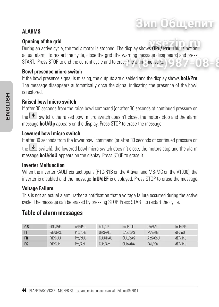 PLANETARY MIXER - MX SERIES Use and maintenance manual Edition 09-2011