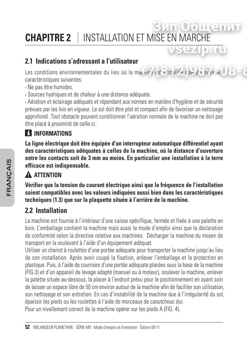 MELANGEUR PLANETAIRE - SÉRIE MX Mode demploi et dentretien Édition 09-11