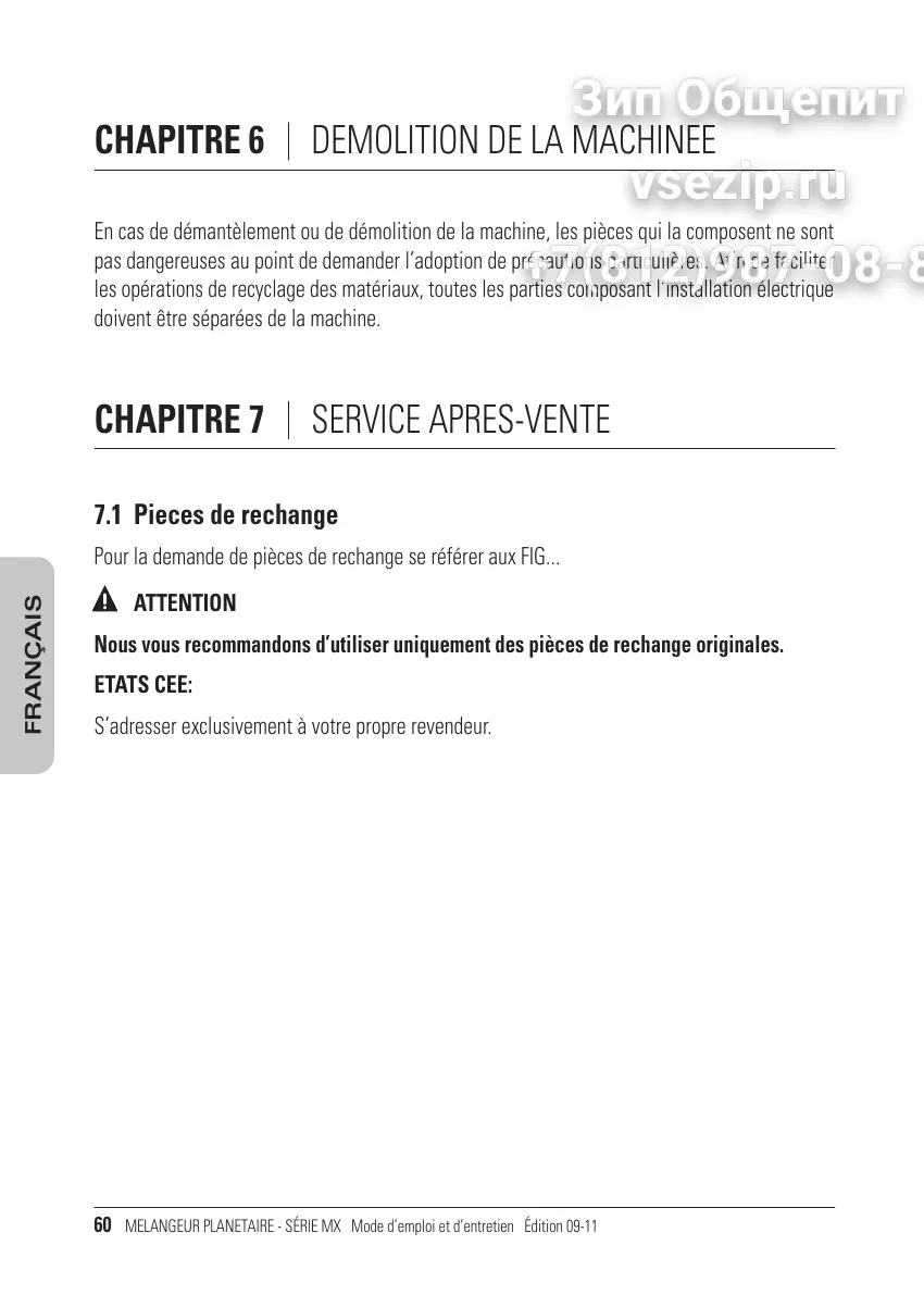 MELANGEUR PLANETAIRE - SÉRIE MX Mode demploi et dentretien Édition 09-11