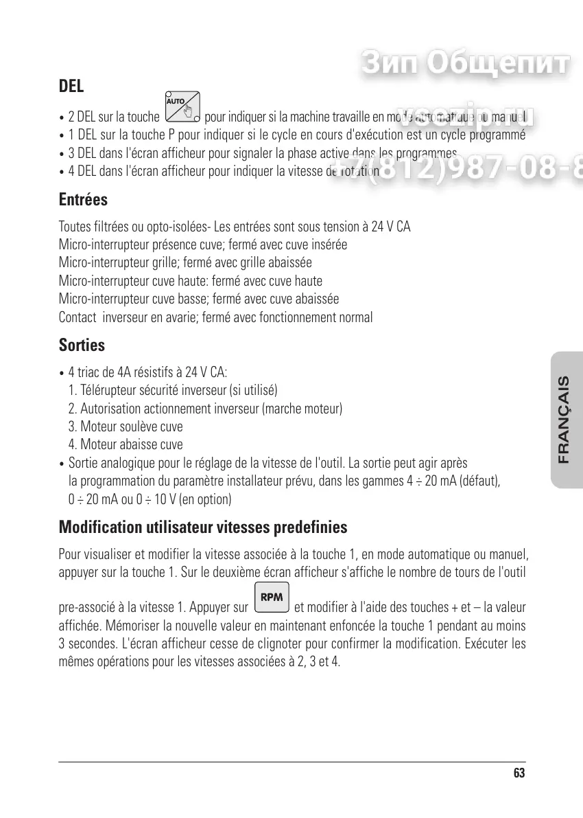 3 DEL dans l'écran afficheur pour signaler la phase active dans les programmes