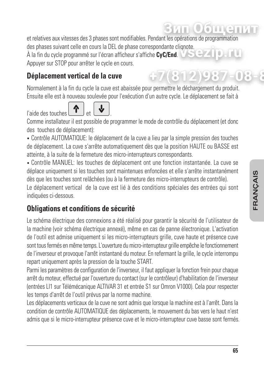 Les déplacements verticaux de la cuve ne sont admis que lorsque la machine est à l'arrêt. Dans la