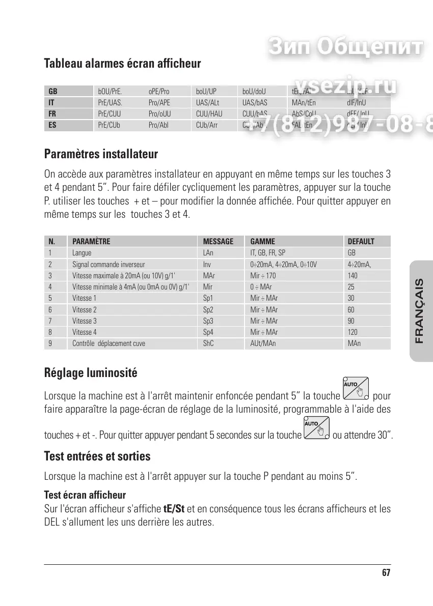 P. utiliser les touches + et pour modifier la donnée affichée. Pour quitter appuyer en