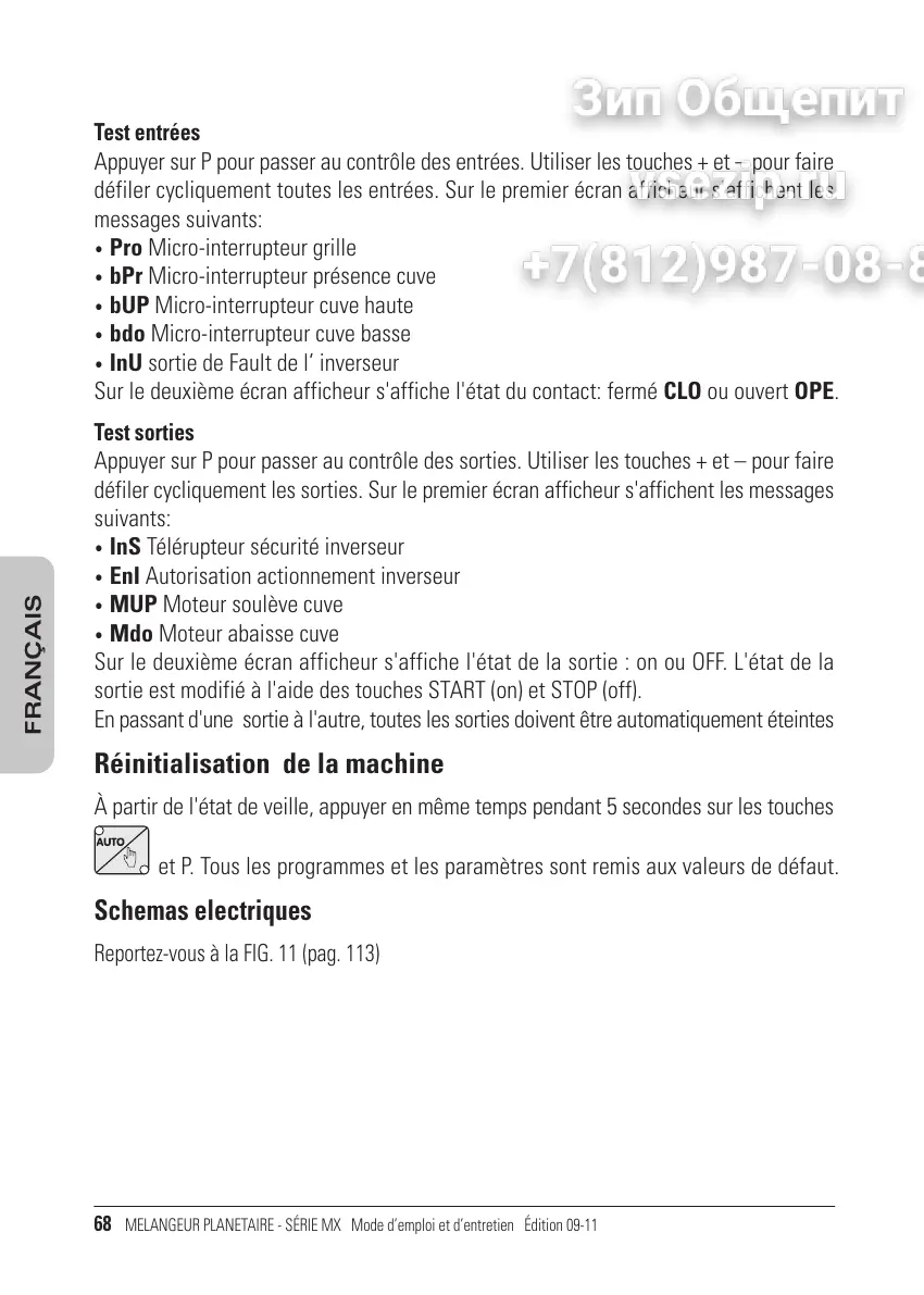 MELANGEUR PLANETAIRE - SÉRIE MX Mode demploi et dentretien Édition 09-11