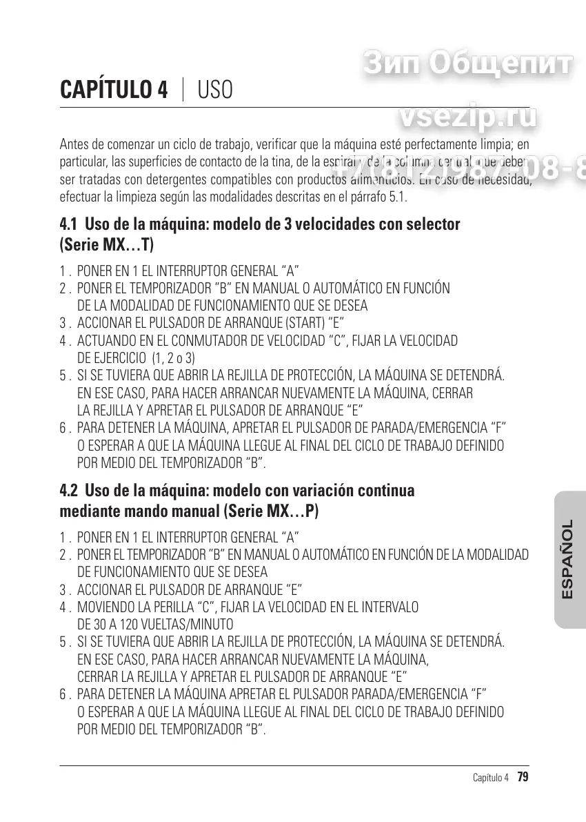 4.1 Uso de la máquina: modelo de 3 velocidades con selector
