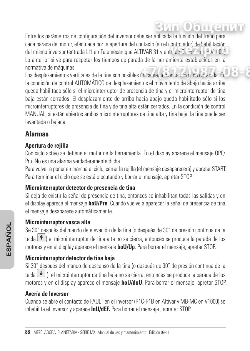motores y en el display aparece el mensaje boU/Up. Para borrar el mensaje, apretar STOP.