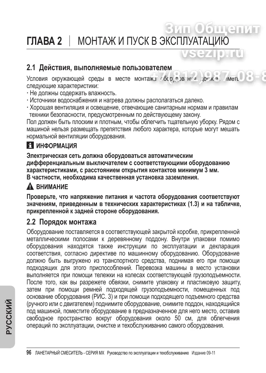 96 ЛАНЕТАРНЫЙ СМЕСИТЕЛЬ - СЕРИЯ MX Pуководство по эксплуатации и техобслуживанию Издание 09-11