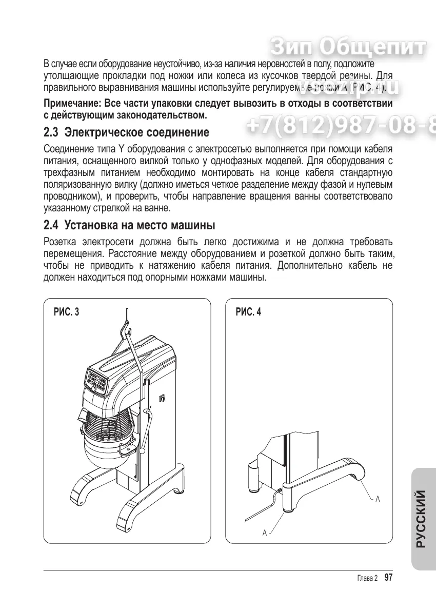 В случае если оборудование неустойчиво, из-за наличия неровностей в полу, подложите
