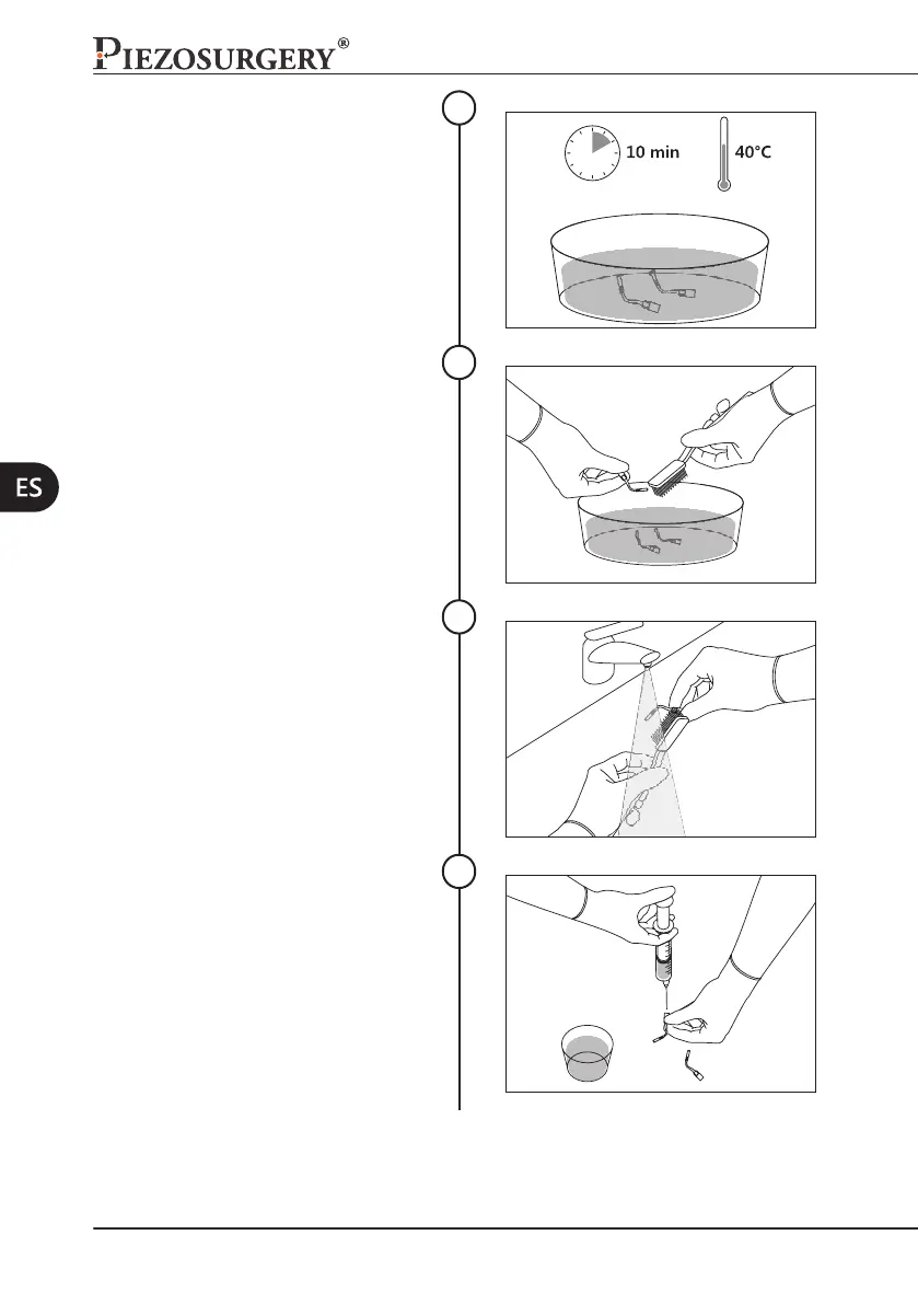 inserto bajo agua corriente con cepillo de