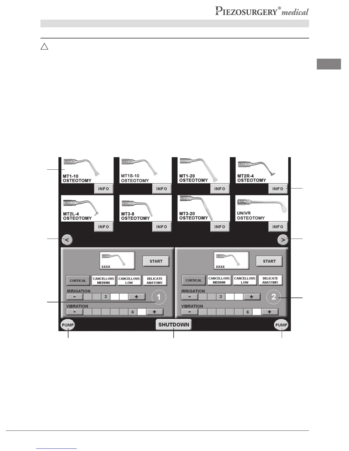 - ThePiezosurgeryMedicalscreencanbegraphicallydividedinto3sections: