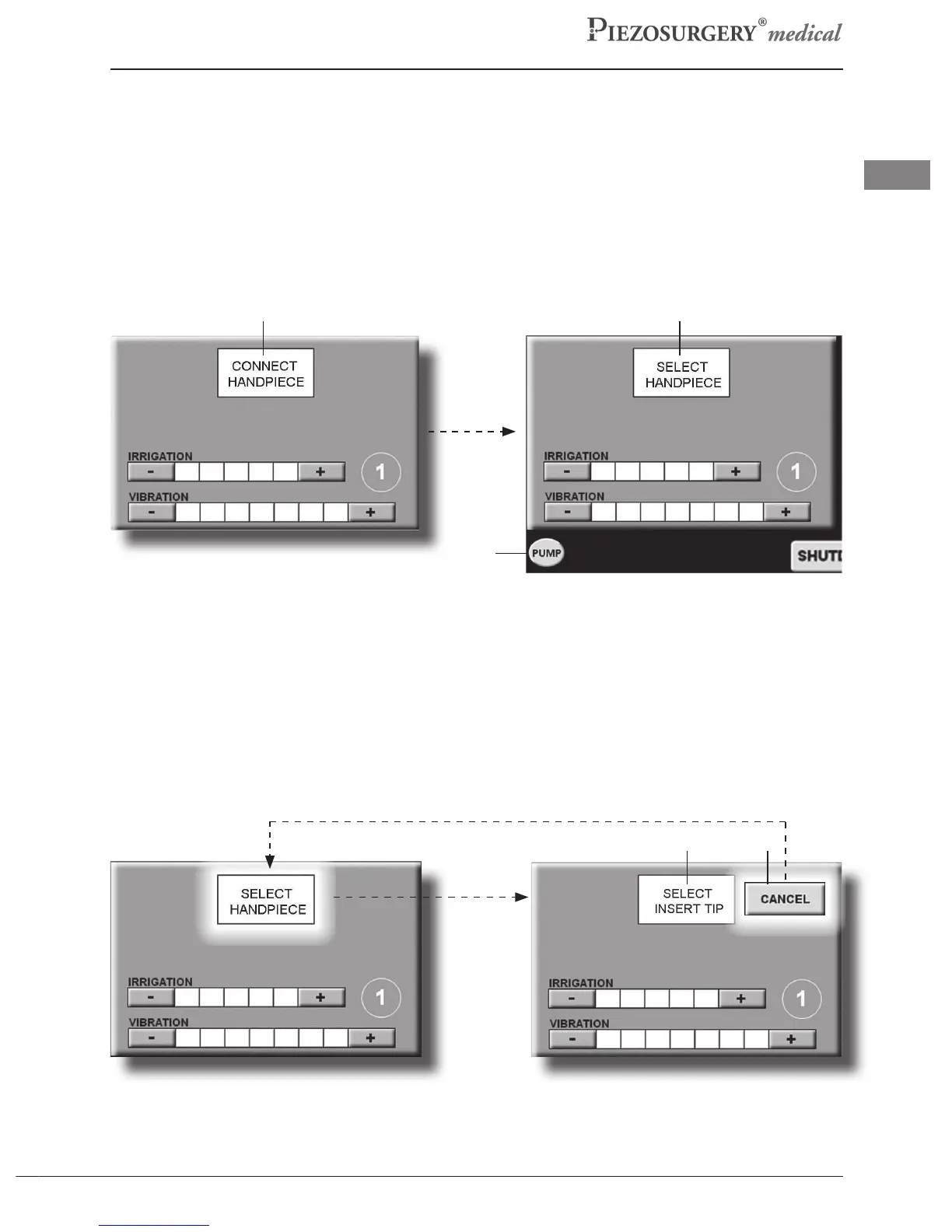 (Pic.18b - Ref.2).After connecting the handpiece to the device body, the PUMP button will