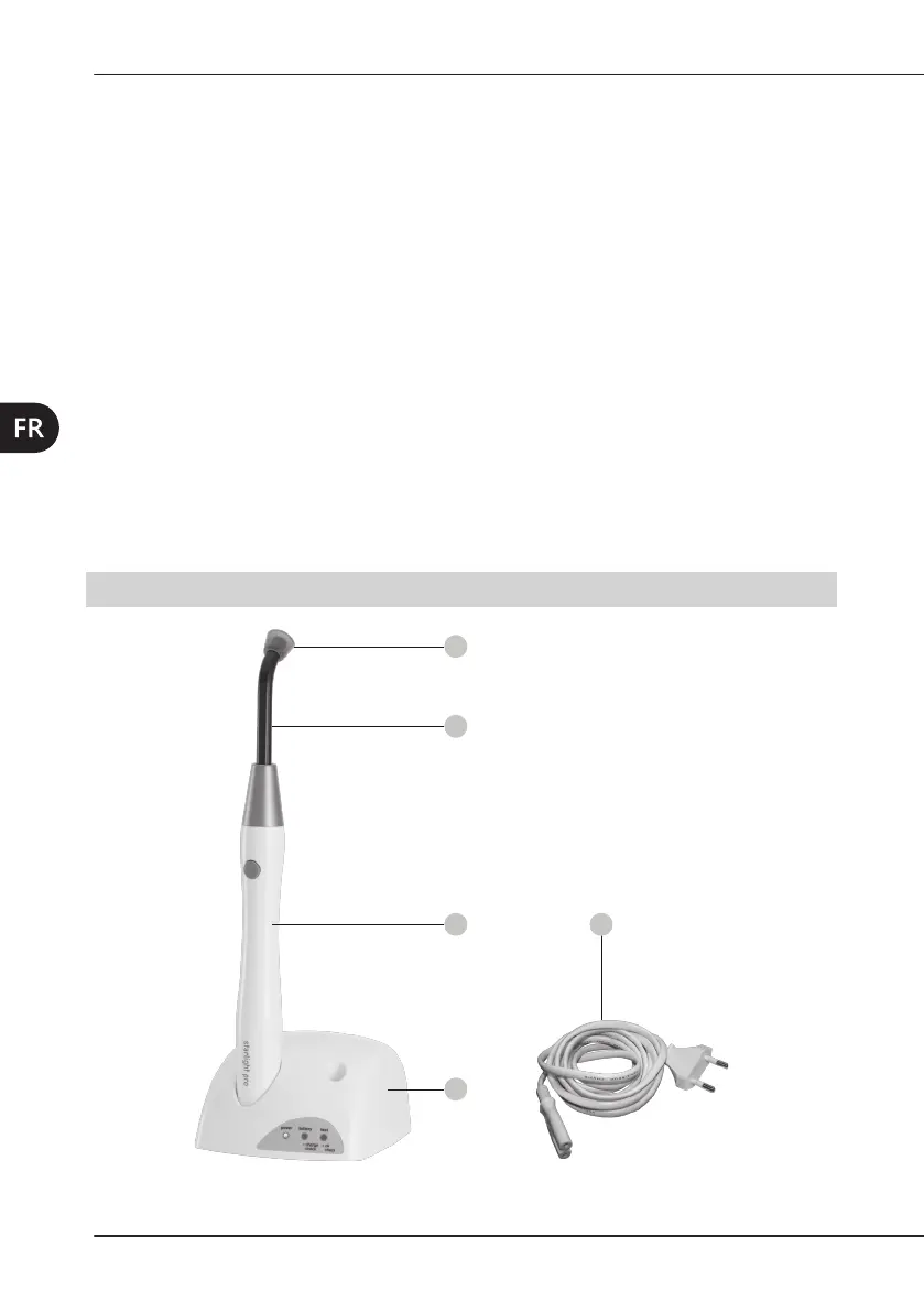 E. 1 Câble d’alimentation électrique pour unité de recharge.