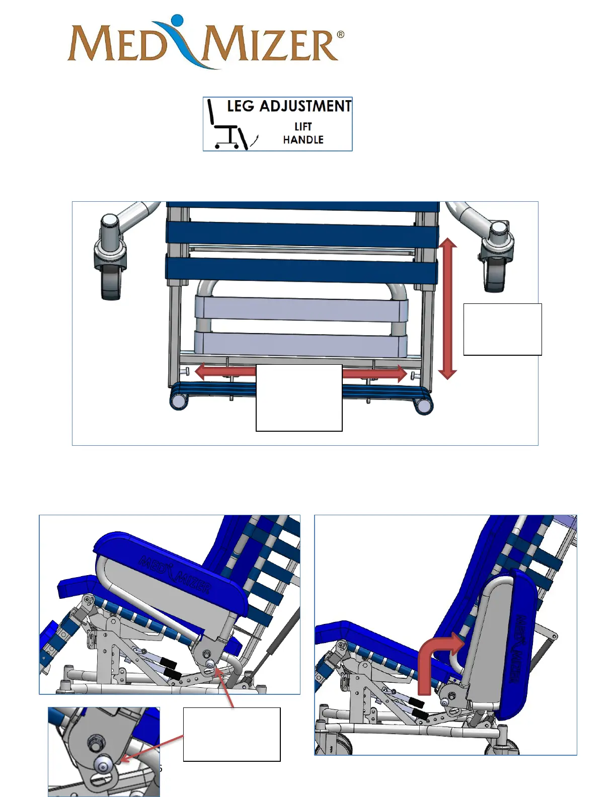 5. Pivoting Side Rail – Pull side rail knob and flip rail up and towards the backrest. Rail
