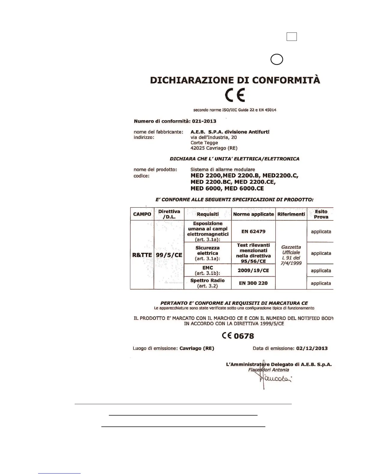 Dichiarazione di Conformità