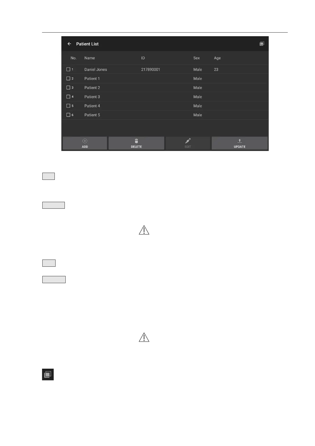 Click the key to update the selected and ticked patient to the