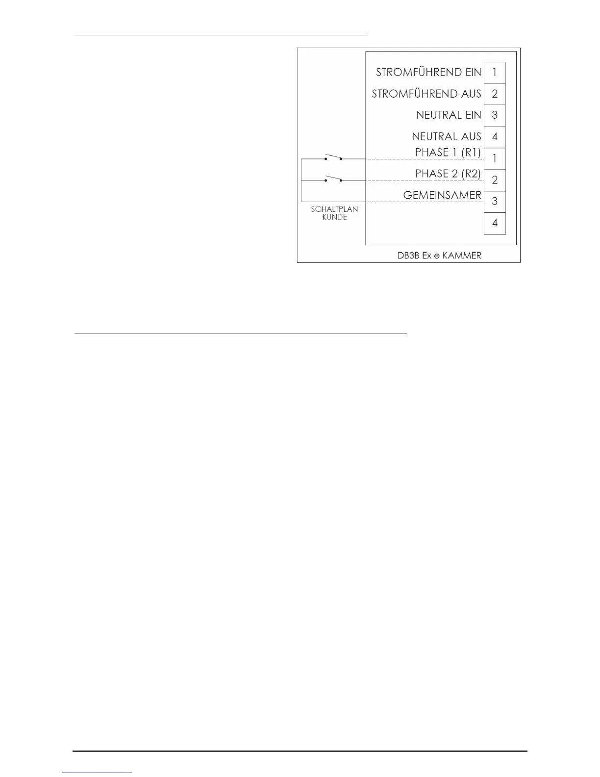 Wechselstromversion Ex de - Einzelheiten des Anschlusses (Typen 3 und 4)