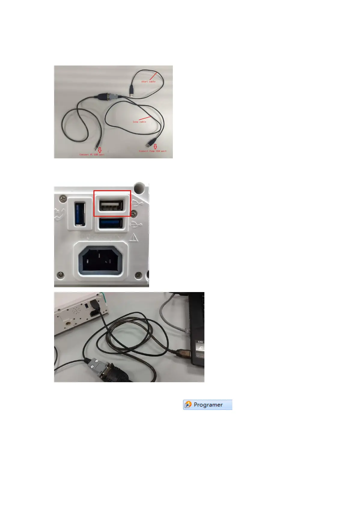 Connect the upper USB port of pump