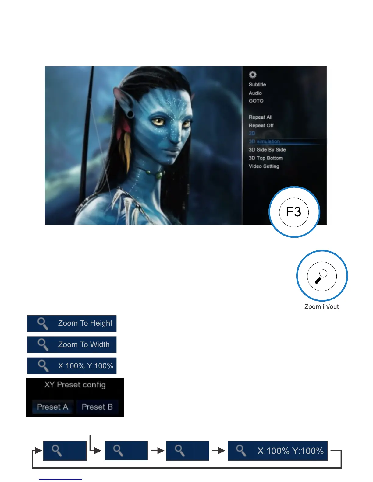 Zoom XY - The Zoom XY allows you to stretch the picture horizontally