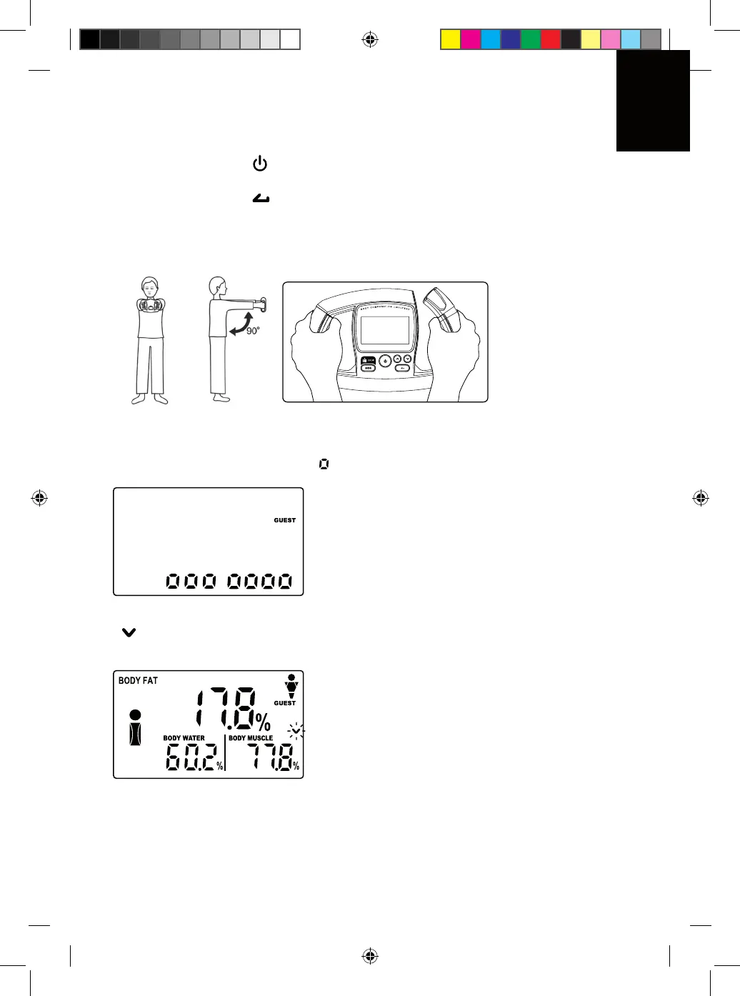 6) Для оценки телосложения нажмите на кнопку [ BCA ]. Обе руки должны находиться