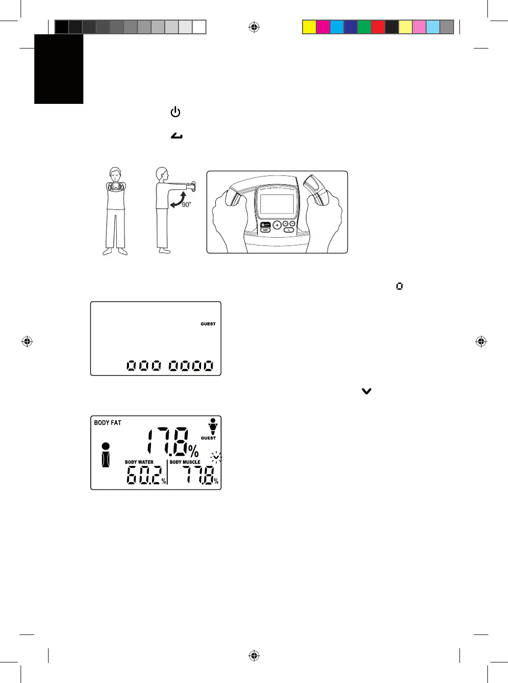 6) Jotta voidaan suorittaa kehon koostumuksen arviointi paina painiketta [ BCA ].