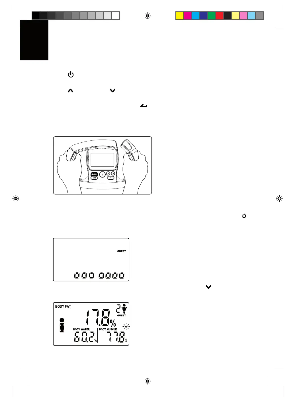 6) 체내구성요소 측정을 위해 [ BCA ] 버튼을 누르십시오. 이때 양손이 기기의