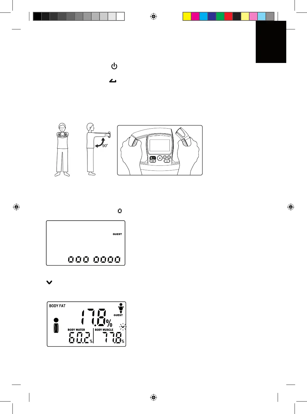 [ BCA ]. Versichern Sie sich, dass beide Hände auf den Metallsensoren der Einheit