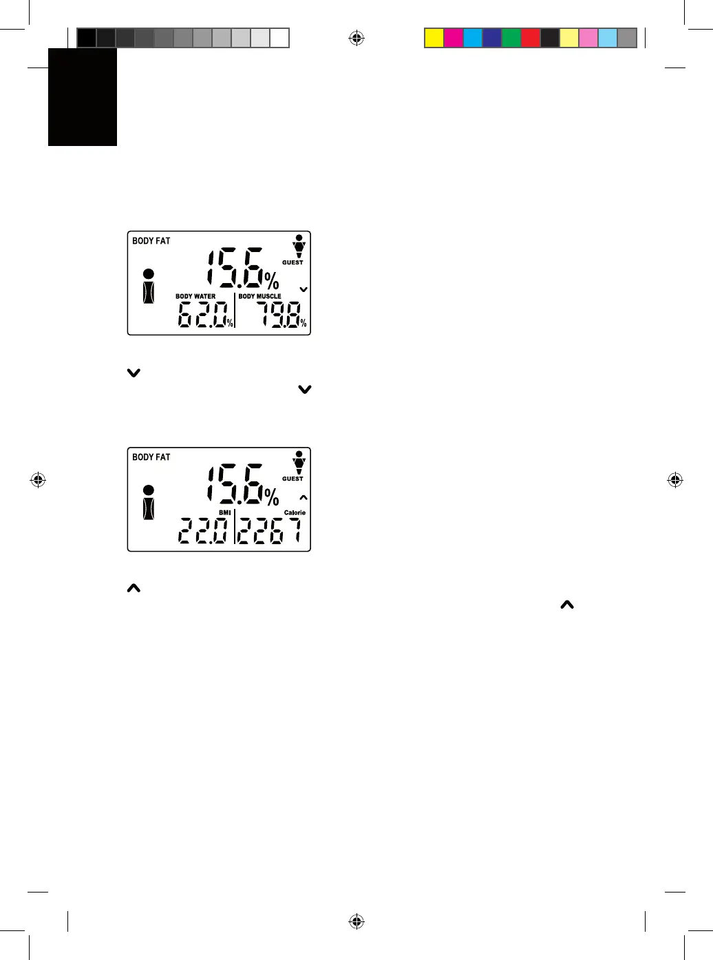 2) Im Display werden die Informationen bezüglich des Körperfettanteils (z.B.