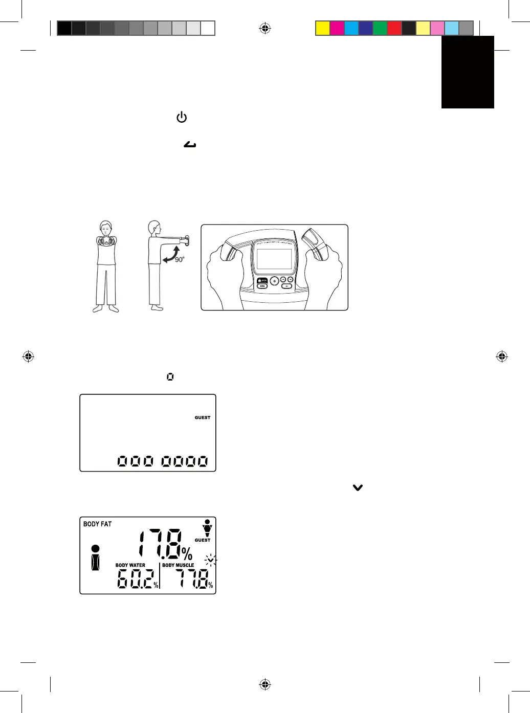 6) Para efectuar a avaliação da composição corporal pressione o botão [