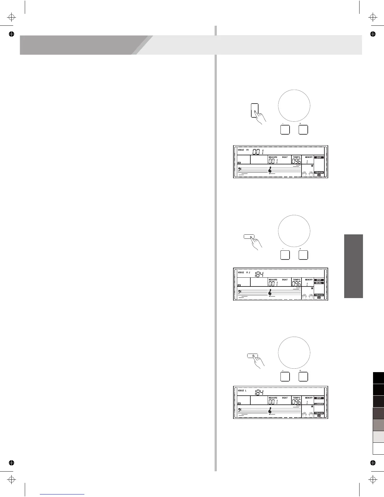 has its voice. The LCD displays the left hand voice name and number,