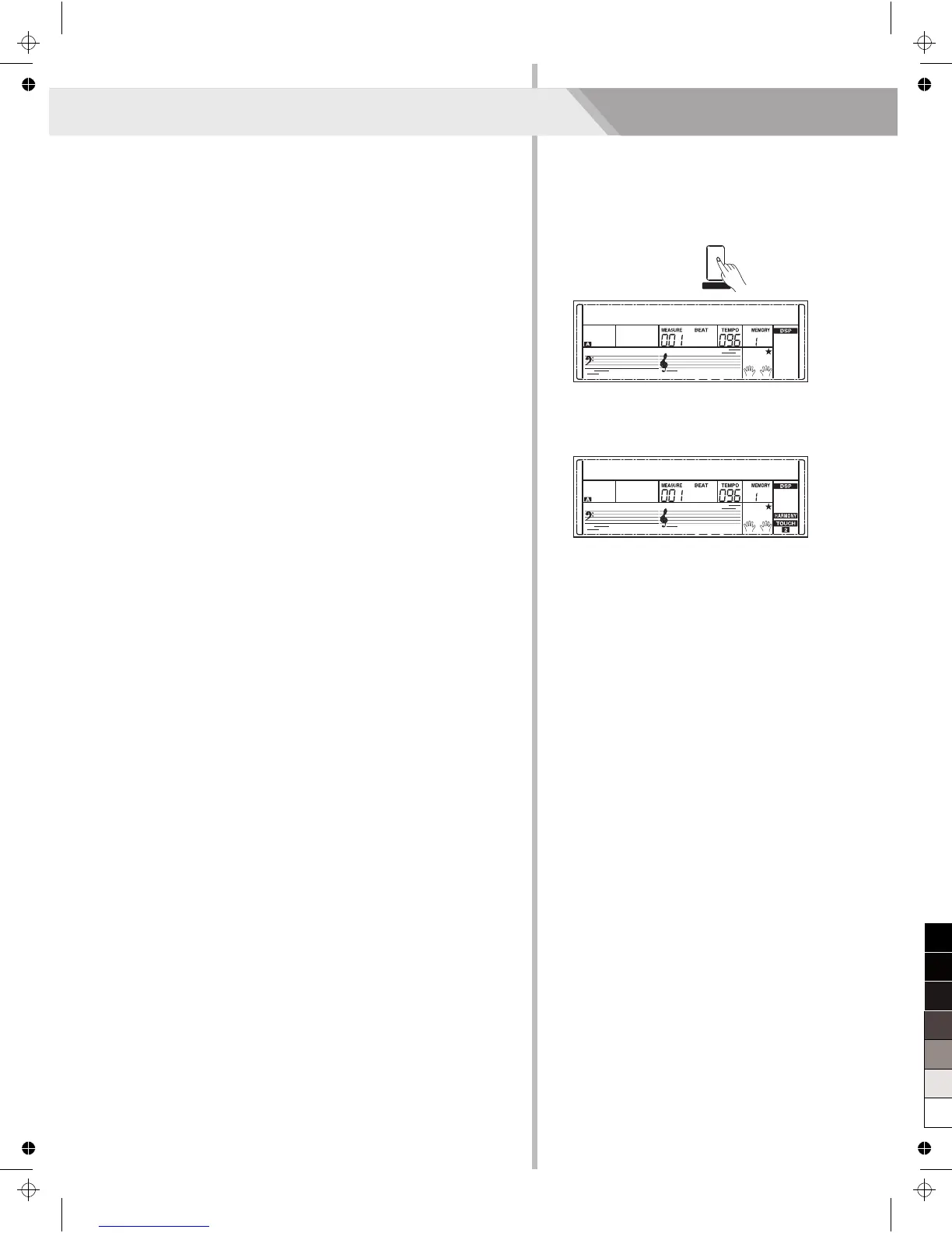 1. Press [HARMONY] button. The LCD displays “OFF”, which