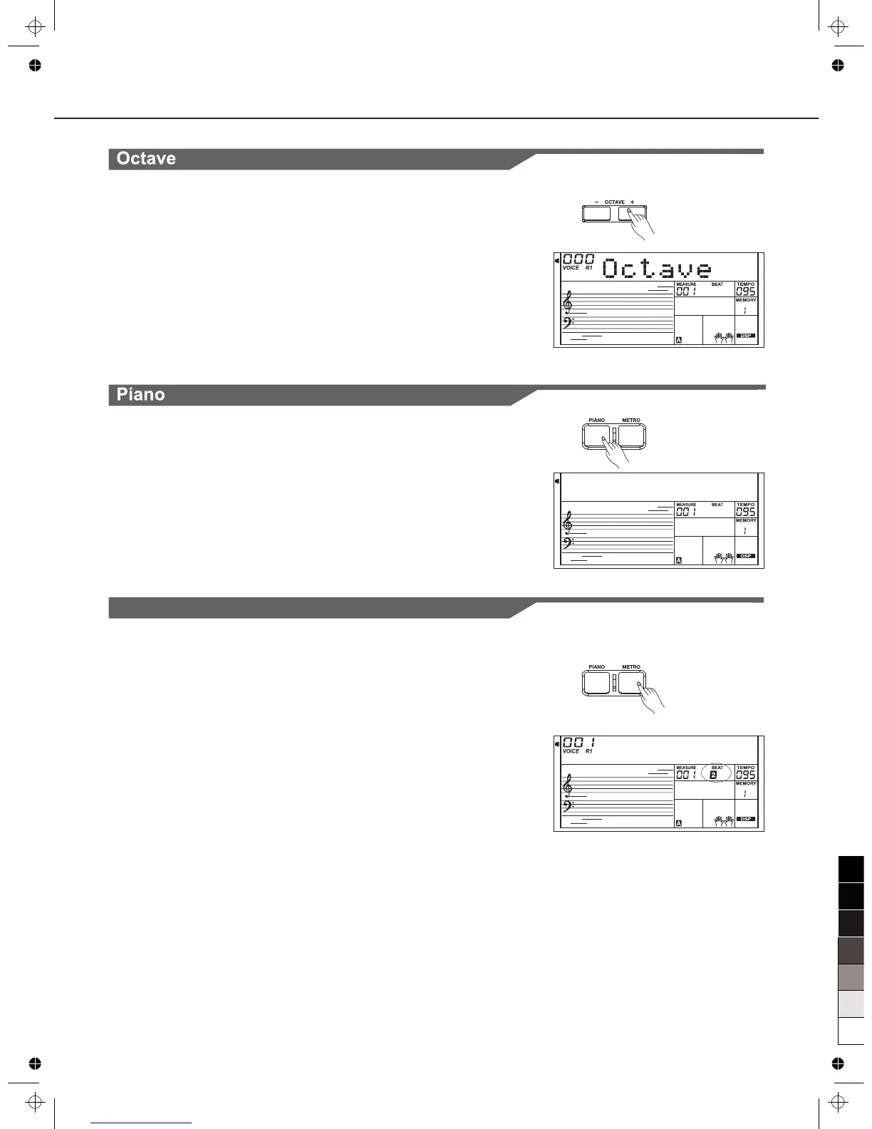 Press [OCTAVE +] or [OCTAVE -] to change the octave value.