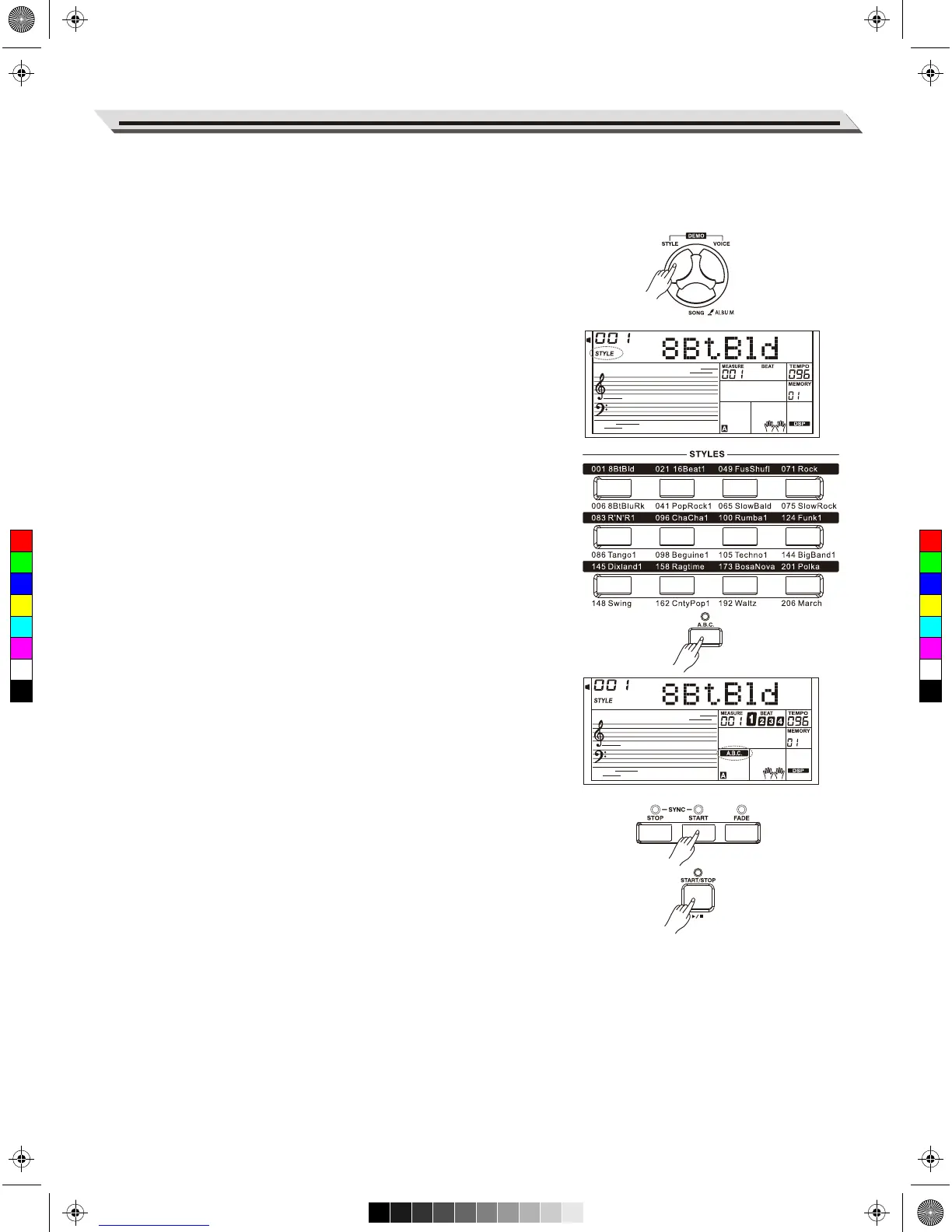 3. Press the [START/STOP]button to start the rhythm tracks of the auto