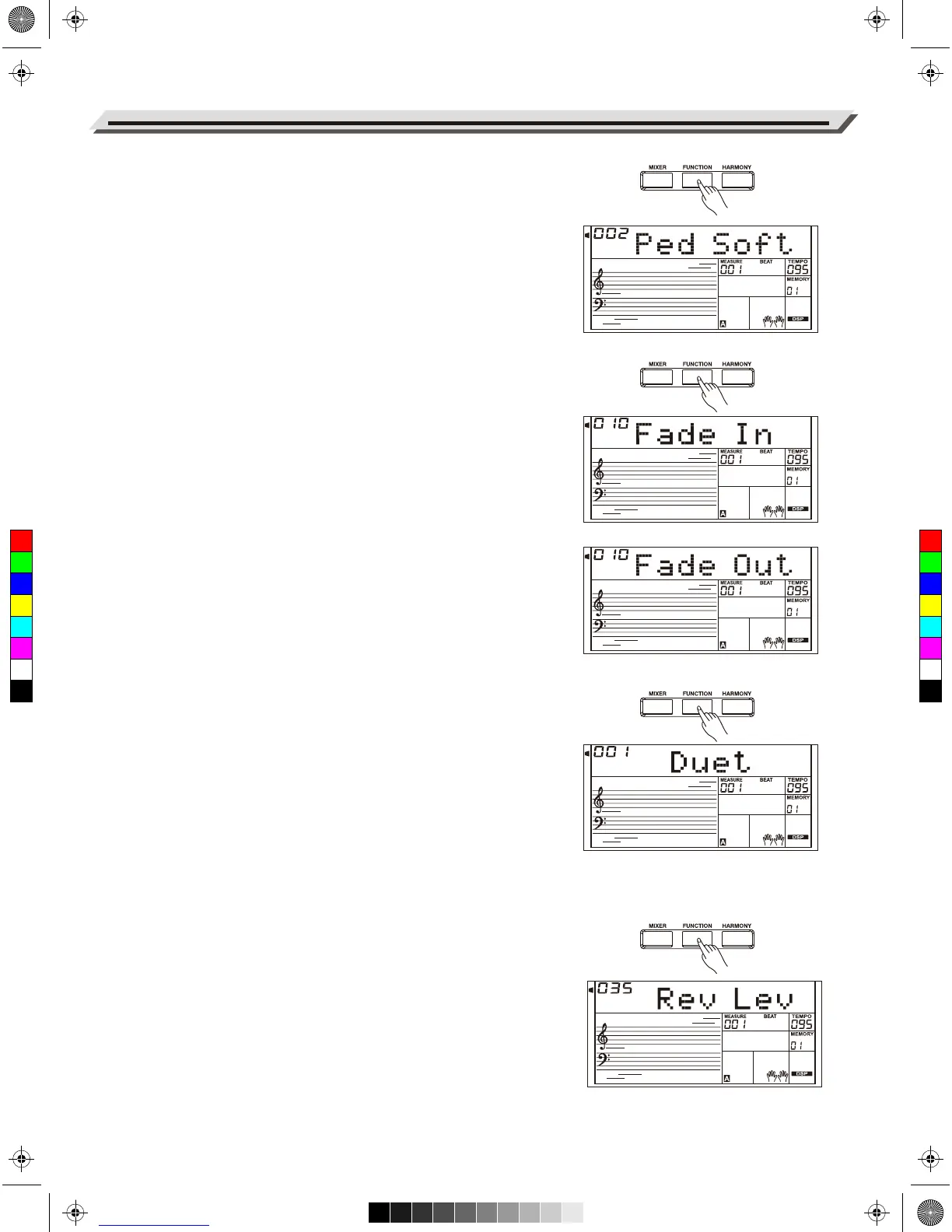 Press the [FUNCTION] button to select the Fade In menu. Use