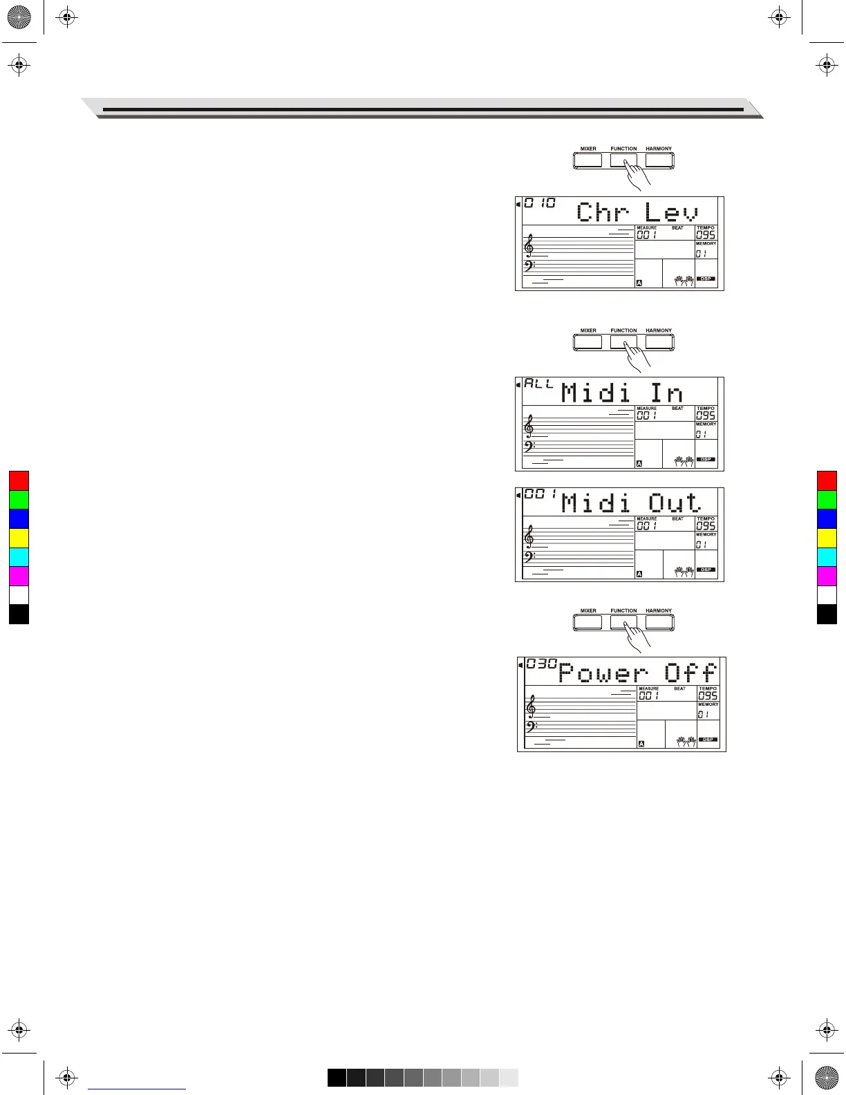 Press the [FUNCTION] button to select the MIDI Out menu. Use