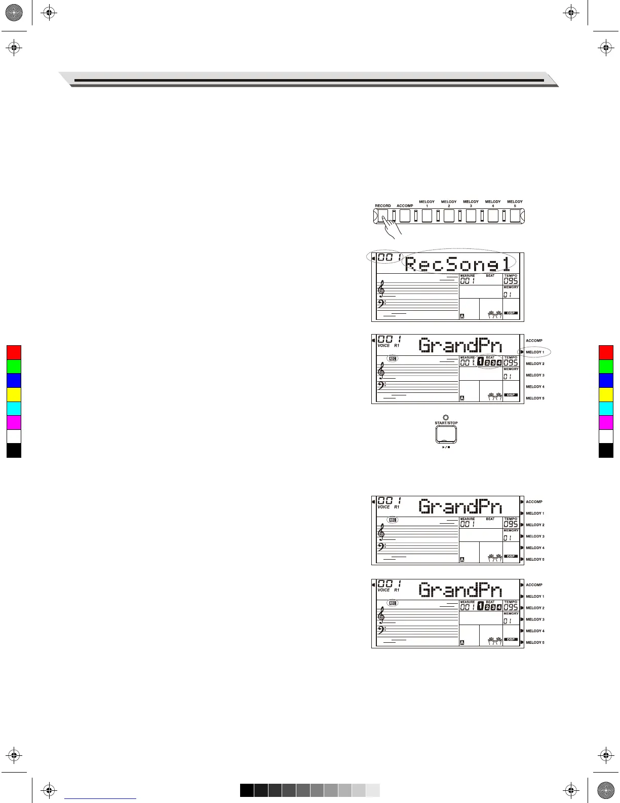 4. Press [START/STOP] button or play the keyboard to start recording. If