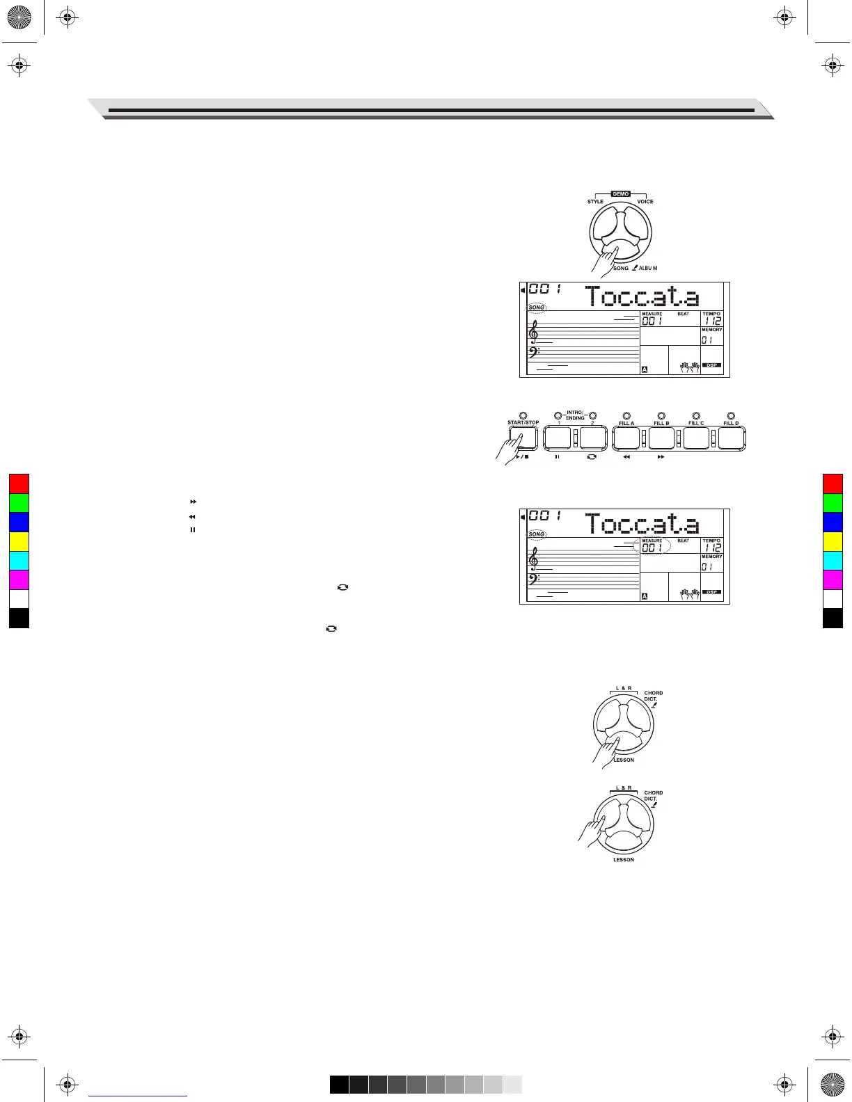 2. Use the Data Dial, [+/YES] or [-/NO] button to select a song.