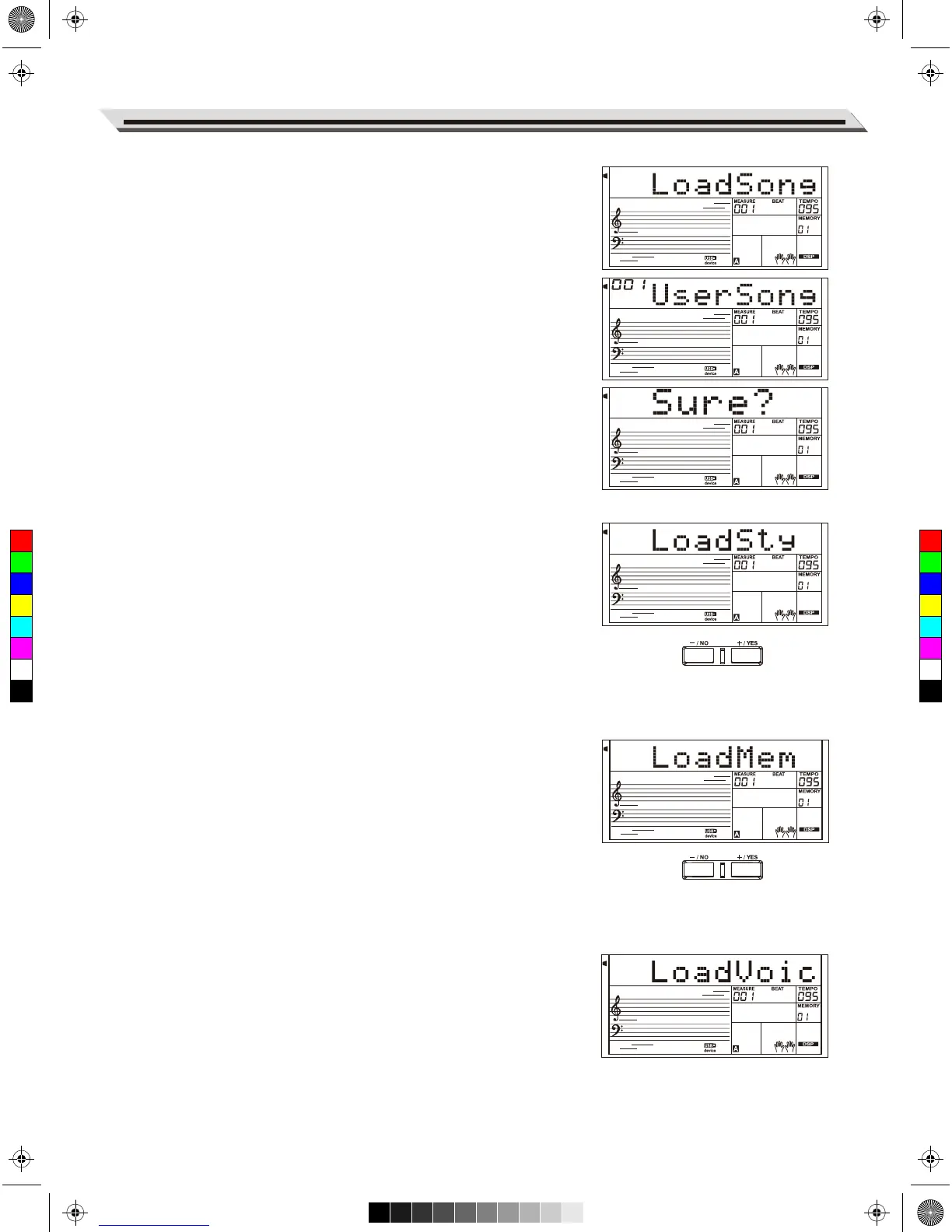 are displayed on LCD, which includes "LoadSong", "LoadSty" , "Load-