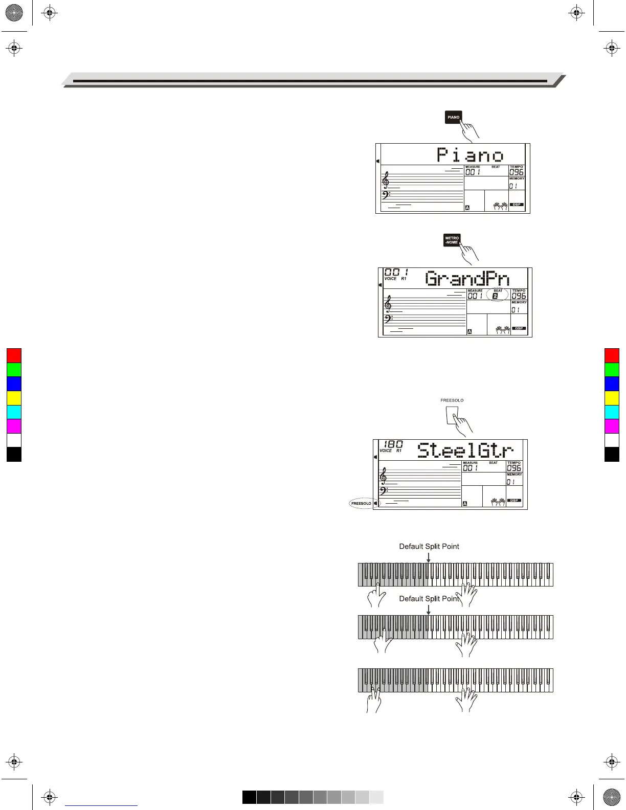 ● Press simultaneously two or more black keys in the left hand area to