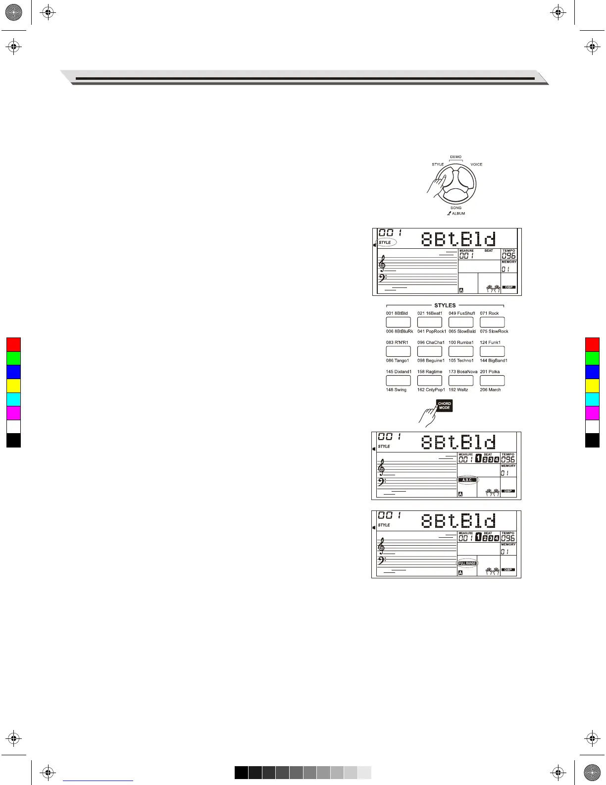 Enter the STYLE mode. “STYLE” lights up on display. LCD shows the