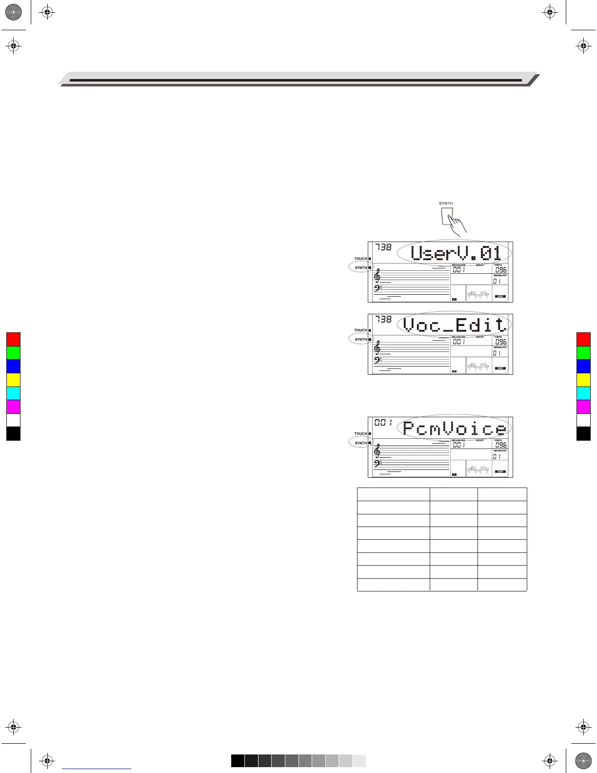 1. Press [SYNTH] button to enter the user voice selection interface.