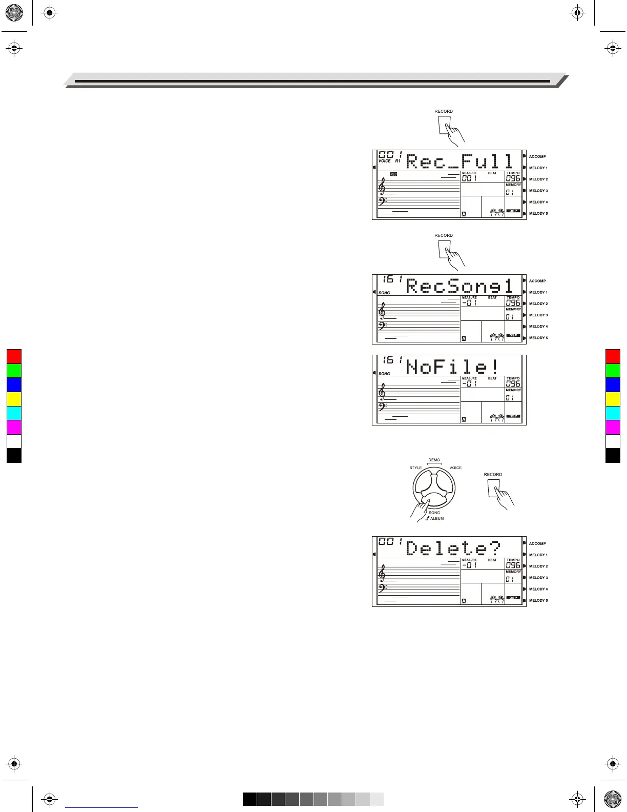 1. Press and hold [RECORD] and [SONG] buttons, then turn on the