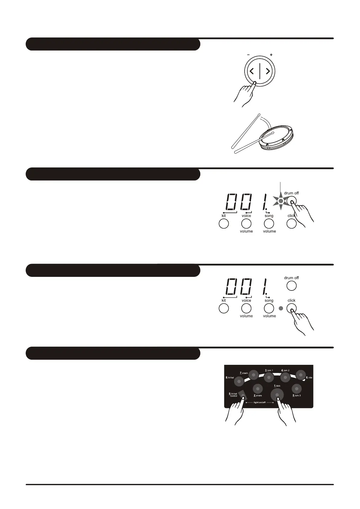 * Press the [ hi-hat control ] + [ kick ] buttons