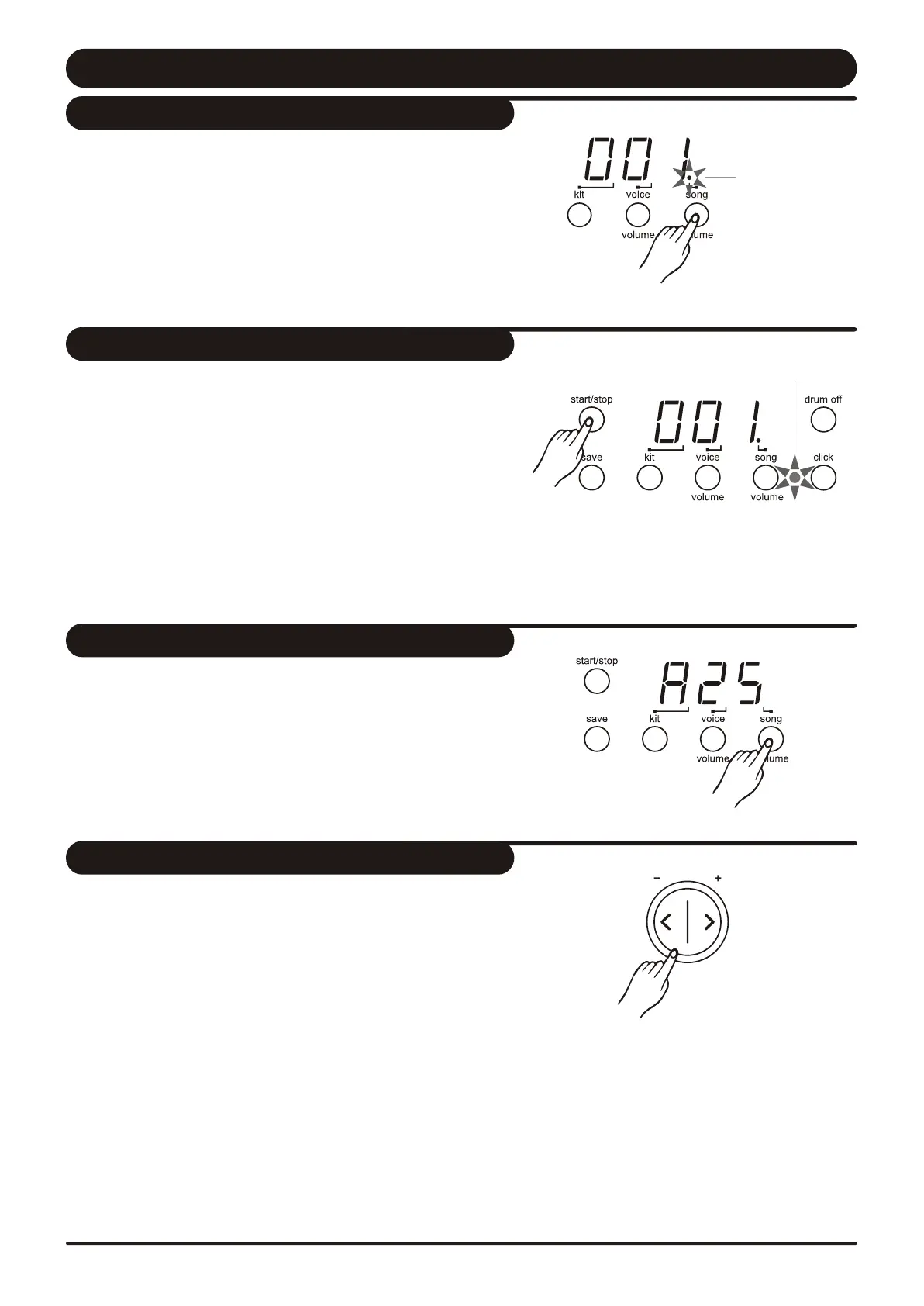 2. Press [ + ] or [ - ] button to adjust the volume of song