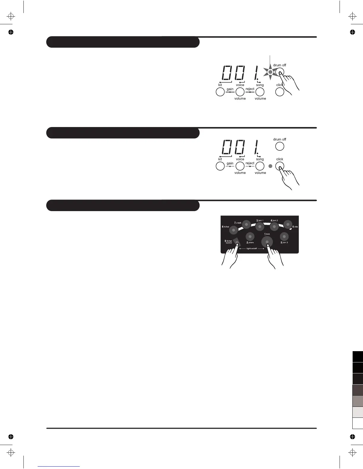 indicators or press the hi-hat pedal and kick the bass drum