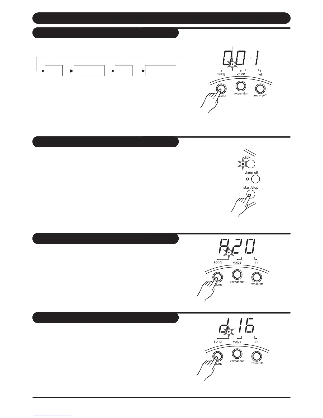 1. Press the [ song/volume ] button until "dXX" is displayed.